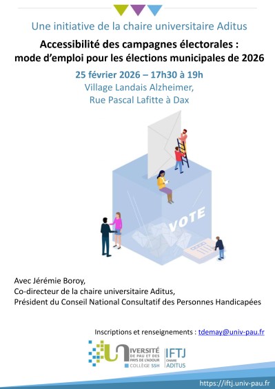 Participent également à cette conférence les membres du comité scientifique de la chaire de recherche ADITUS (« Accessibilité, autodétermination, transitions juridiques ») de l’Université de Pau et des Pays de l’Adour, qui se réunit le matin même pour la première fois.
