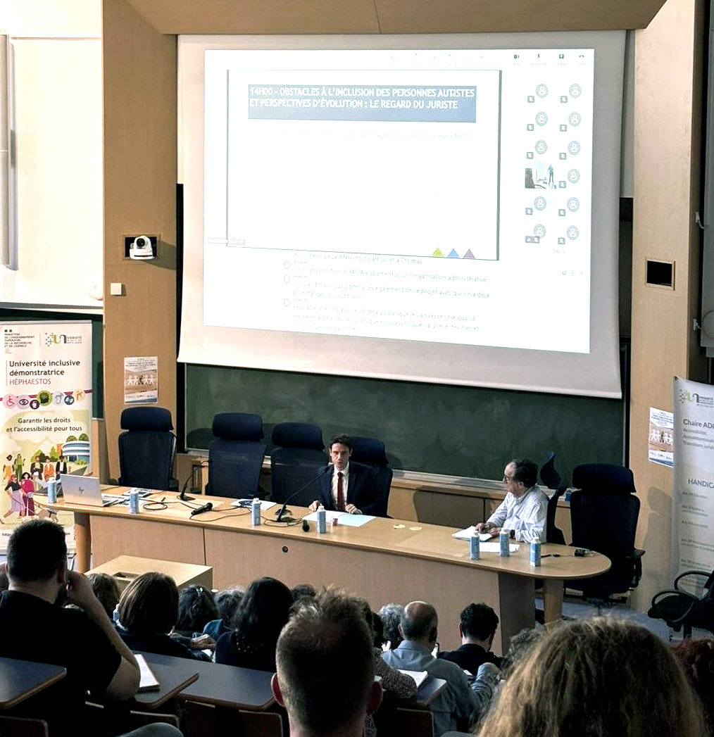 Lors du colloque, les participants ont notamment pu découvrir les conclusions principales du rapport juridique de Romain Routier, chercheur post-doctoral en droit public, portant sur les droits des personnes autistes et de leurs aidants, dans une perspective d’effectivité des droits dans l’espace transfrontalier. Ce travail de recherche approfondi, central pour l’Action 2 du projet TEA Pir, a été réalisé sous la direction scientifique de Stéphanie Rabiller au sein de la chaire Aditus, rattachée au laboratoire de recherche IFTJ de l’UPPA. Ces projets s’inscrivent dans les ambitions de l’Université de Pau et des Pays de l’Adour d’être une université inclusive en termes de handicap, y compris les troubles du neurodéveloppement.