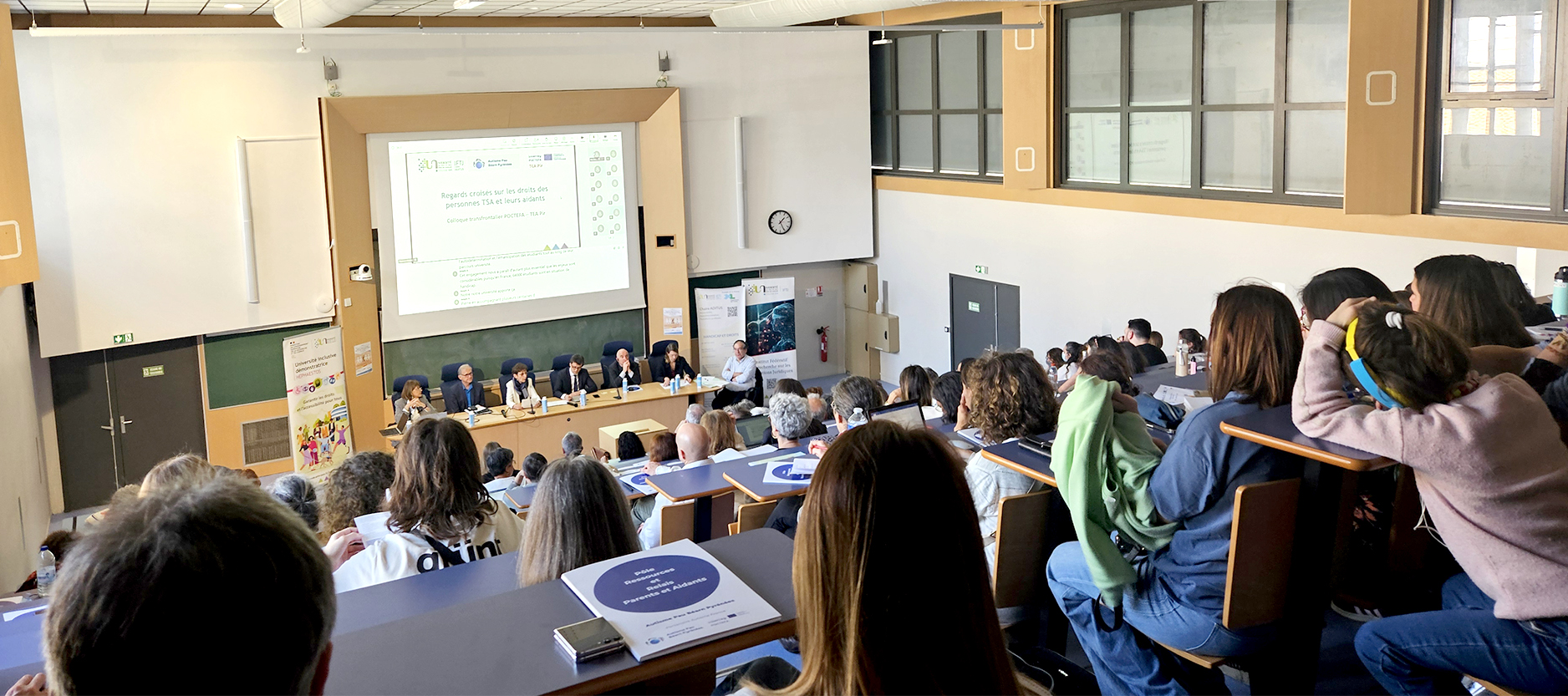 Ce colloque s’inscrivait dans le cadre de l’accueil à Pau, les 19 et 20 mars 2026, des membres du projet TEA Pir (pour “Transférer, Expérimenter et Apprendre sur l’autisme dans les Pyrénées”), financé par le projet européen Interreg POCTEFA*. Lancé en janvier 2024 pour une durée de trois ans, ce projet vise à construire une réflexion commune et comparative sur les politiques publiques d’inclusion des personnes atteintes de TSA dans l’espace transfrontalier franco-espagnol.