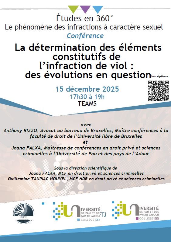La détermination des éléments constitutifs de l’infraction de viol : des évolutions en question". La conférence aura lieu le lundi 15 décembre, de 17h30 à 19h.
