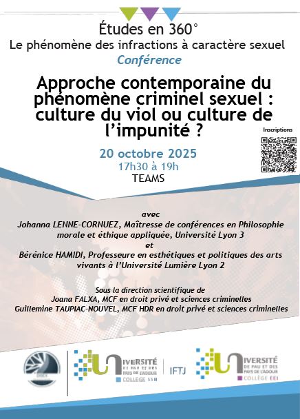 Conférence Approche contemporaine du phénomène criminel sexuel : culture du viol ou culture de l’impunité ? dans le cadre du cycle de conférences " Études en 360° - Le phénomène des infractions à caractère sexuel "